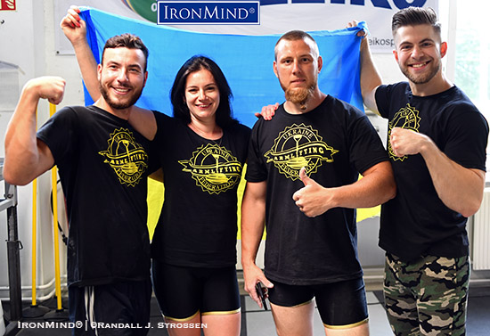 Team Ukraine, always a powerhouse in armlifting, featured (left to right) Nikolay Voloshanyuk, Irina Koroleva, Dmitry Grunsky and Pavlo Andriushchenko. IronMind® | ©Randall J. Strossen photo