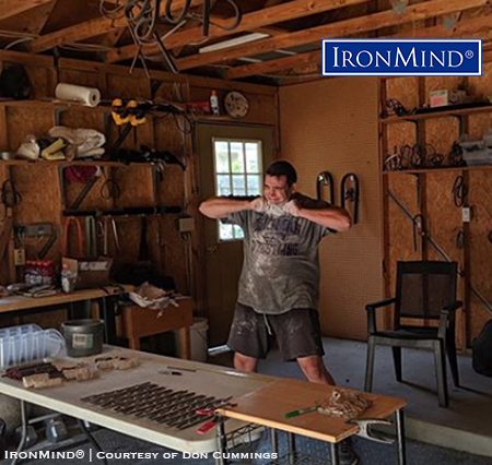 Not just another day in the office: Don Cummings (41 years old, 6"1 tall and 240 lb.) takes on—and meets—the extreme challenge of bending 100 IronMind Red Nails. IronMind® | Photo courtesy of Don Cummings