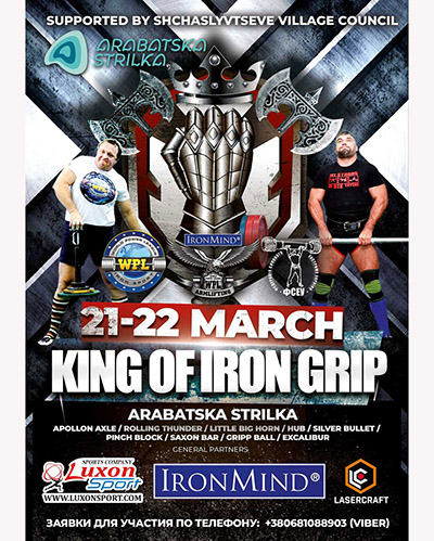 Kicking off his 2020 armlifting season, grip contest organizer Vitaliy Pulin has contests scheduled for March 7 and March 21 in Melitopol, Ukraine. Both contests feature the core events of Rolling Thunder, Apollon’s Axle, CoC (Captains of Crush) Silver Bullet Hold, along with the IronMind Hub, Block and Little Big Horn, and given history, keep you eye open for potential world record performances. IronMind® | ©WPL