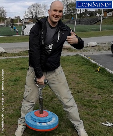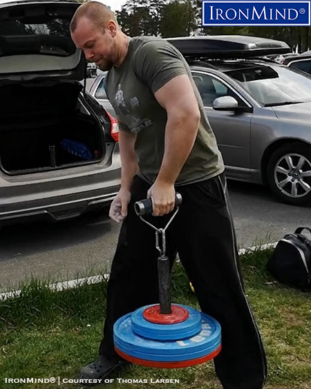 Thomas Larsen (Norway) showed his mastery of 90 kg on the Rolling Thunder, a requirement for certification on the Crushed-To-Dust Challenge. IronMind® | Courtesy of Thomas Larsen