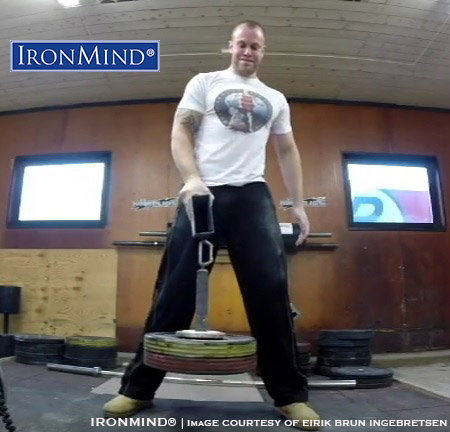 “Although there were few competitors (9), we had a great display of strength,” Eirik Bruun Ingebretsen reported to IronMind. “After Thomas and myself did comfortable lifts at 40 kg [ont he IronMind Blockbuster Pinch Grip Block], we decided to go for a new world record. As you can see in the video, the setup weighed 46.6 kg.